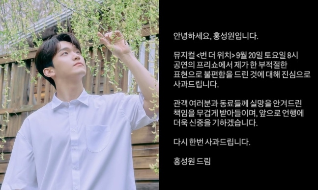 홍성원은 22일 자신의 SNS를 통해 '부적절한 표현으로 불편함을 드린 것에 대해 진심으로 사과한다'며 책임을 통감한다고 밝혔다. 그는 '앞으로 언행에 더욱 신중을 기하겠다'고 다짐하며 다시 한번 사과의 뜻을 전했다. 특히, 그가 출연한 '번 더 위치'는 여성 서사를 다루고 있어 더욱 부적절한 발언으로 여겨지고 있다.