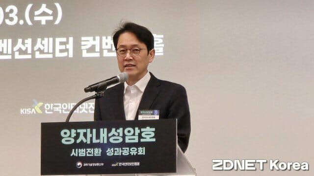 오진영 한국인터넷진흥원(KISA) 본부장이 '2025 양자내성암호 전환 시범사업 성과공유회'에서 양자내성암호에 대한 해외의 높은 관심을 강조했다. 그는 '양자내성암호 전환에 대한 관심은 우리가 안에서 느끼는 것보다 밖(해외)이 훨씬 높습니다'라고 언급하며, 한국이 이미 미국과 스위스와 협력 중임을 밝혔다. 이번 행사에서는 양자내성암호의 중요성과 이를 적용한 시범사업의 성과가 공유되었다.