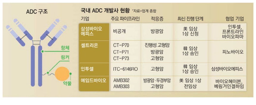 국내 제약·바이오 기업들이 항체약물접합체(ADC) 신약 개발에 박차를 가하고 있다. 에임드바이오가 상장 첫날 주가가 300% 상승하며 주목받고 있으며, 셀트리온은 FDA의 패스트트랙 지정을 받았다. ADC 시장은 2028년까지 300억 달러 규모로 성장할 것으로 예상된다.