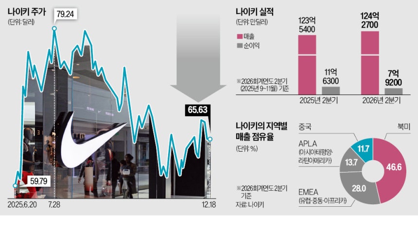 글로벌 스포츠웨어 브랜드 나이키가 중국 시장에서의 매출 감소와 관세 부담으로 어려움을 겪고 있지만, 월가에서는 내년 실적 개선에 대한 기대감이 커지고 있다. 최근 발표된 2분기 순이익은 전년 대비 32% 감소했지만, 매출은 소폭 증가하며 월가의 예상을 웃돌았다. 이러한 상황 속에서 나이키 주가는 실적 발표 후 10% 이상 하락했지만, CEO의 리더십 아래 기업의 체질 개선이 이루어지고 있다는 긍정적인 신호가 감지되고 있다.
