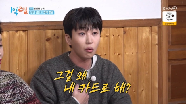 KBS 2TV '1박 2일'에서 딘딘이 방송 중 KBS에 대한 불만을 털어놓으며 시청자들의 이목을 집중시켰습니다. 최근 방송에서는 그의 어머니가 깜짝 등장해 멤버들을 위해 정성 가득한 음식을 준비했지만, 딘딘은 요리 재료비가 너무 비쌌다고 폭로했습니다. 그는 '엄마가 카드로 결제한 것에 대해 불만을 토로하며, 제작진이 부탁한 것이라며 영수증을 챙기라고 요구했습니다.