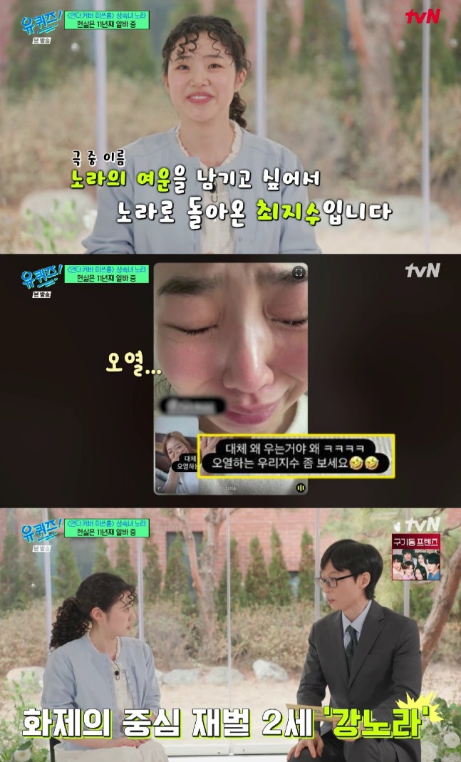 배우 최지수가 tvN '유 퀴즈 온 더 블럭'에 출연해 드라마 '언더커버 미쓰홍'의 종영 후 박신혜와의 감정적인 영상 통화에 대해 이야기했다. 그는 '아직 노라를 보내지 못했다'며 눈물을 흘렸고, 박신혜는 웃으며 그를 위로했다고 전했다. 최지수는 이 드라마에서 처음으로 중요한 역할을 맡아 긴장과 기쁨이 교차했던 촬영 현장을 회상했다.
