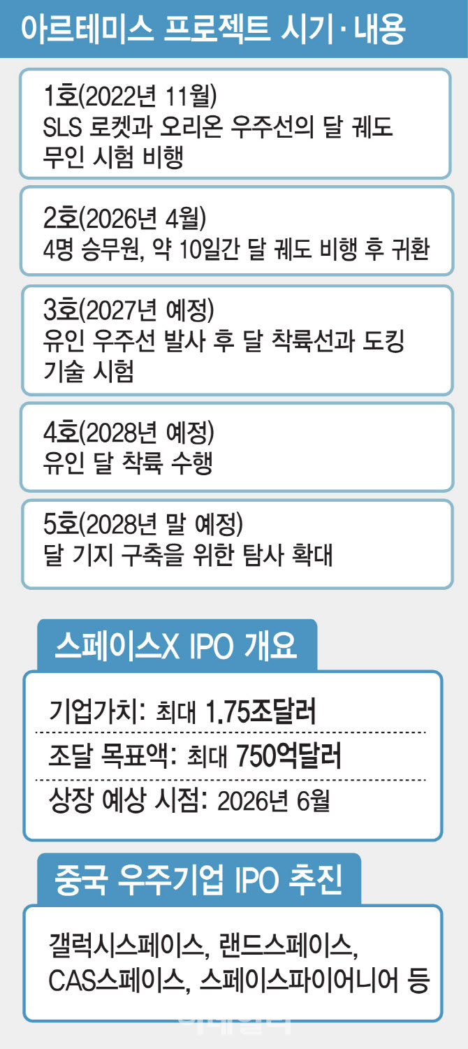 아르테미스 2호의 성공적인 발사는 미·중 간의 우주 패권 경쟁을 더욱 격화시키고 있다. NASA의 유인 달 탐사는 53년 만에 이루어졌으며, 이는 양국 민간 우주기업들이 기업공개(IPO)에 나서는 계기가 되고 있다. 스페이스X는 최대 113조원의 자금을 조달할 계획으로, 이는 사상 최대 규모의 IPO로 기록될 전망이다.