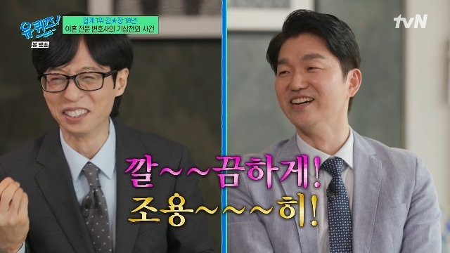 tvN의 인기 예능 '유 퀴즈 온 더 블럭'에서 유재석이 이혼 전문 변호사 박민철과의 재미있는 일화를 공개했다. 방송에서 유재석은 박민철에게 명함을 받았고, 그 내용이 흥미로움을 더했다. 박민철은 '조용히 깔끔하게 처리해드린다'는 메시지를 담아 유재석에게 명함을 전달하며 웃음을 자아냈다.