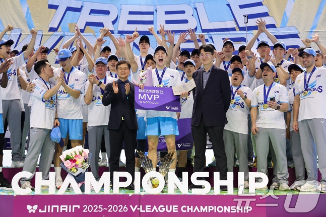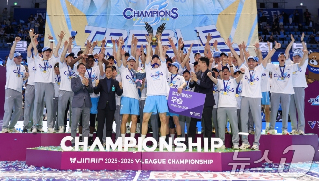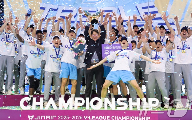 대한항공이 2025-2026 V리그 챔피언결정전에서 현대캐피탈을 제치고 우승을 차지하며 트로피를 들어올렸다. 이로써 대한항공은 이번 시즌 트레블을 달성하며, 선수들과 팬들에게 기쁨을 안겼다. 시상식에서 선수들은 우승의 기쁨을 만끽하며, 팀의 위상을 다시 한번 확고히 했다.